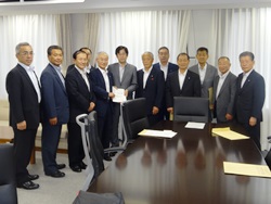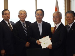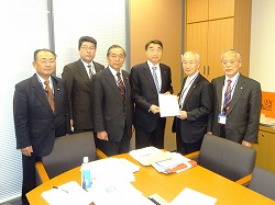 | 26.10.31 | 9月に行われた内閣改造により、竹下復興大臣が就任されたことから、東日本大震災からの復旧・復興等に関する要請活動等を、大塚会長ほか本会役員が上京し実施した。 要請では、東日本大震災からの復旧・復興対策、原子力災害対策、平成23年新潟、福島豪雨からの復興対策について強く要請した。 →■新生ふくしまの構築に関する要請書(PDF) 要請先 〇復興大臣 〇経済産業大臣(対応:高木陽介経済産業副大臣) ○文部科学大臣(対応:山本ともひろ文部科学大臣政務官) 〇環境大臣(対応:鈴木事務次官) 〇本県関係国会議員 【要望の様子】