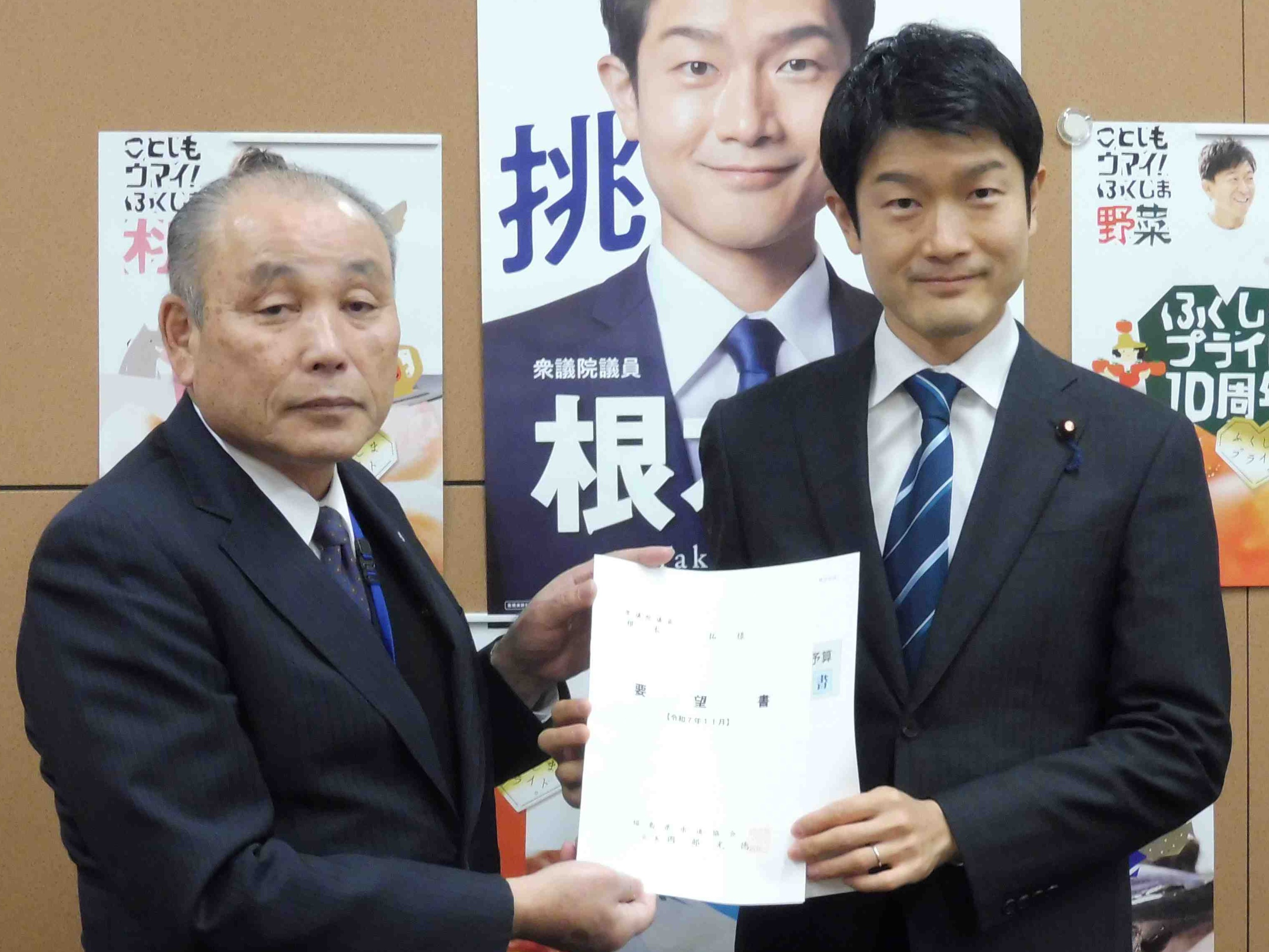 本会に事務局を置く福島県水道協会(会長 岡部光徳古殿町長)は、県選出国会議員に対し、令和8年度の水道関係政府予算編成等に係る要望活動を実施した。![]() 根本拓衆議院議員(右) |