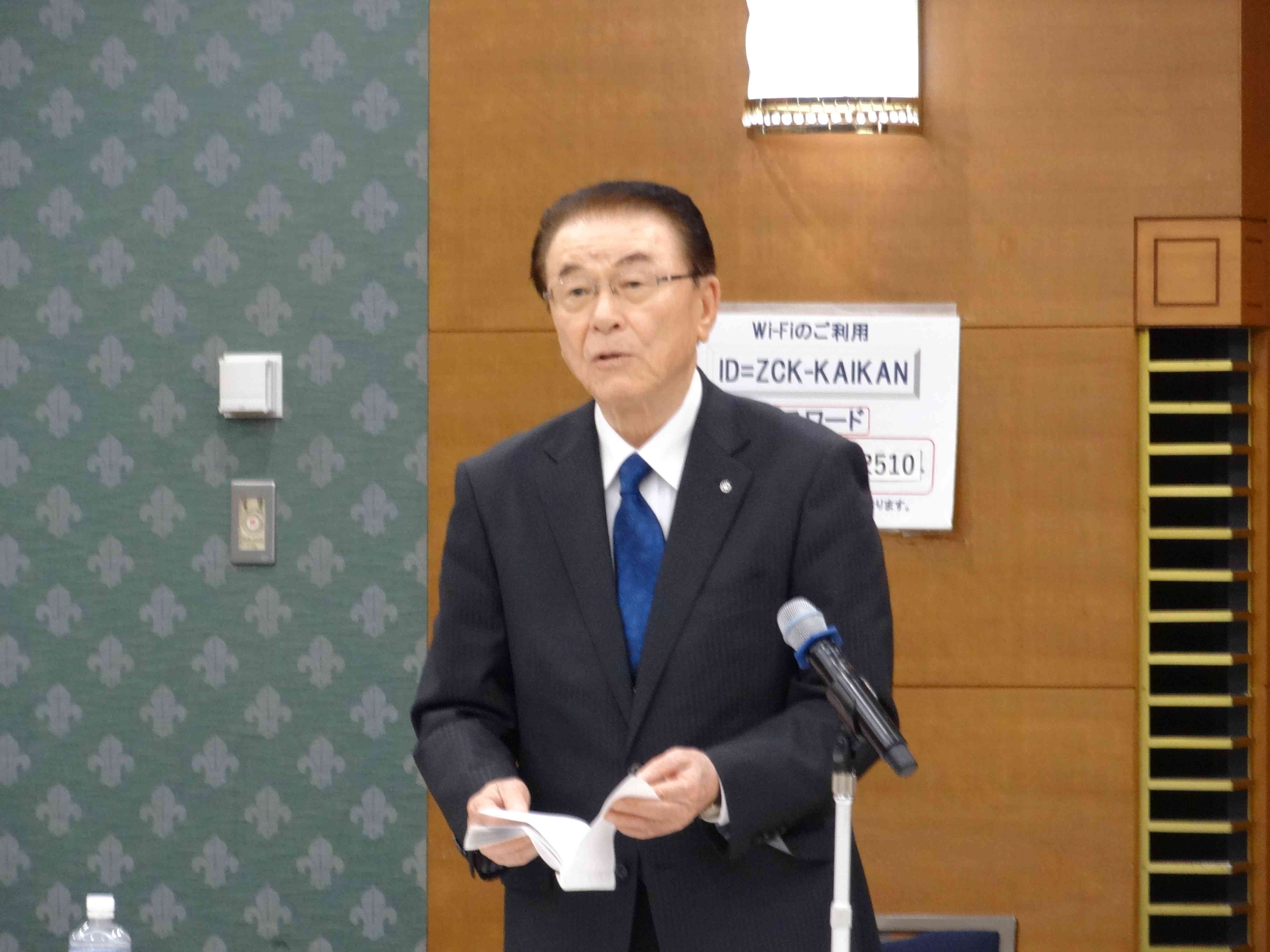 挨拶する星學会長