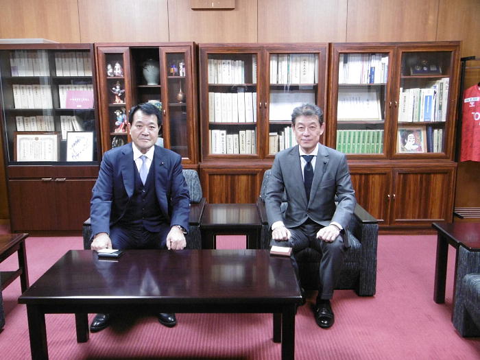 県議会正副議長就任挨拶(12/13)県議会の西山尚利議長及び山田平四郎副議長が就任挨拶のため、本会事務局に来訪されました。 |