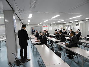 | いわき市で会議を開催し、尾鷲第一法規株式会社取締役執行役員販売促進局長より文書管理における法令遵守の運用について、平野井県災害対策課課長より災害時の相互応援体制の構築についてそれぞれ説明を受けました。 また、小名浜港東港及びいわき鹿島水素ステーションの視察を行いました。 |