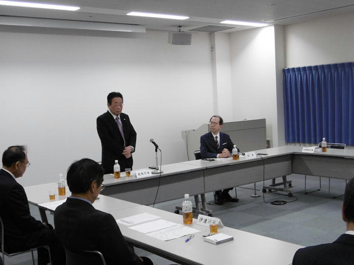 | 内堀知事を招き、医師確保、災害対策、地域公共交通維持、クマ被害対策等、県全体の課題や各市の抱える課題について意見交換を行いました。 | ||
